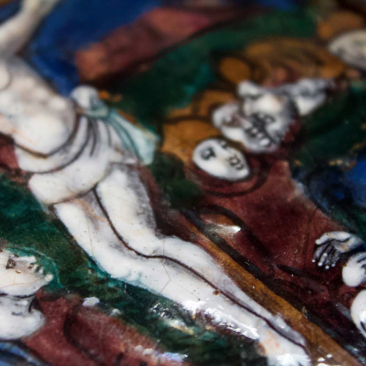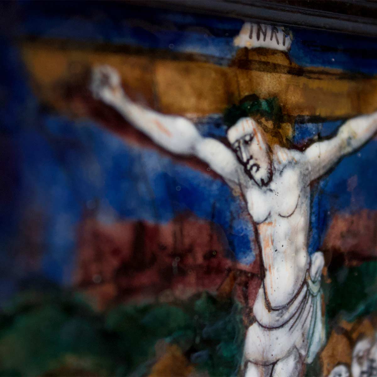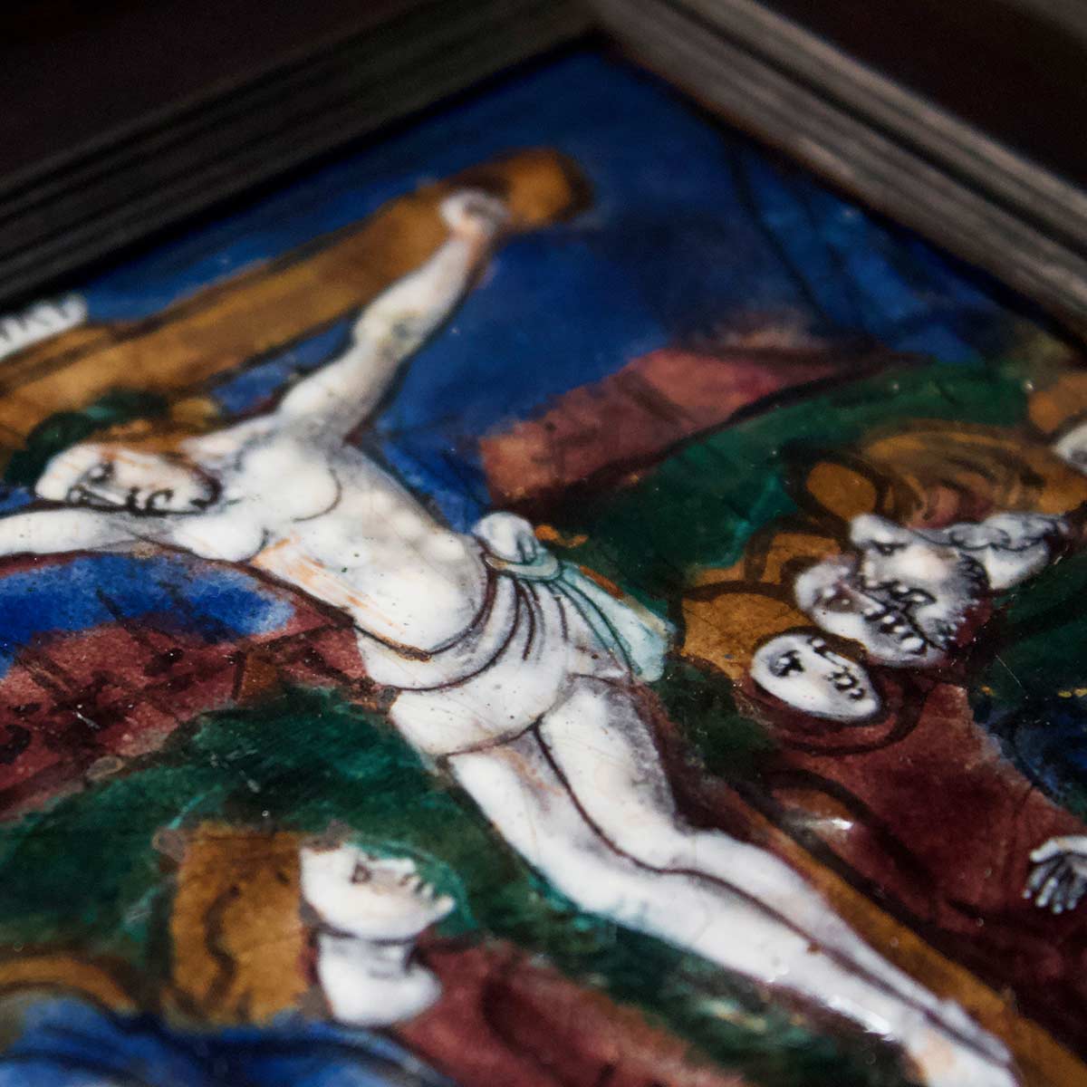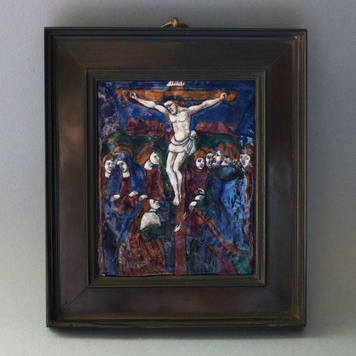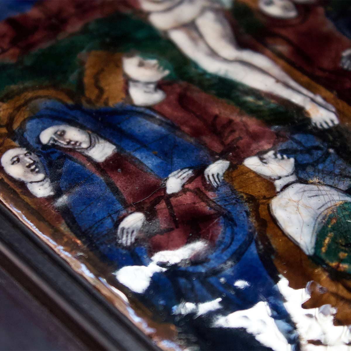 entro rara cornice lastronata in ebano della seconda metà del Cinquecento con attaccaglia originale in bronzo dorato