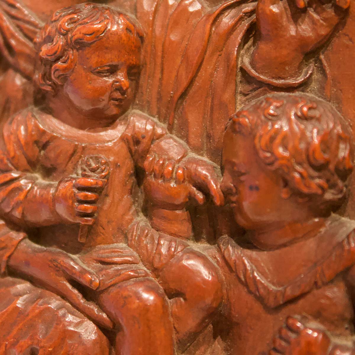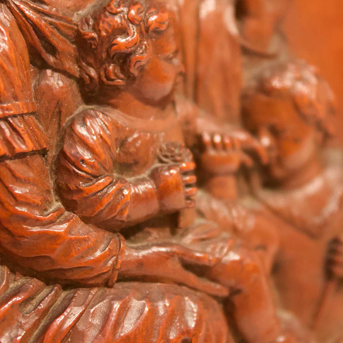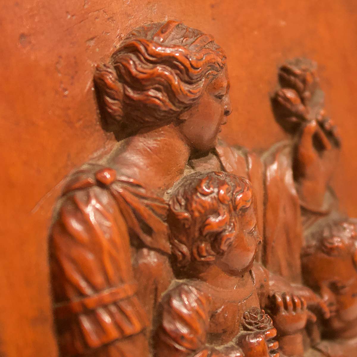 Legno di bosso con tracce di lacca scura d’origine