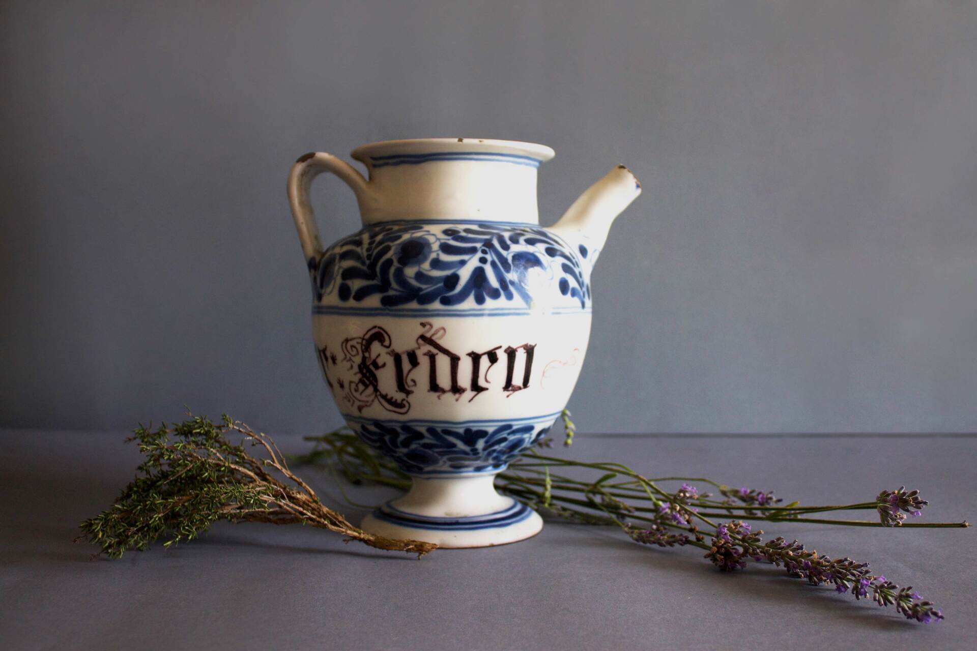 ALBARELLO IN MAIOLICA DECORATO IN MONOCROMIA AL PREZZEMOLO
