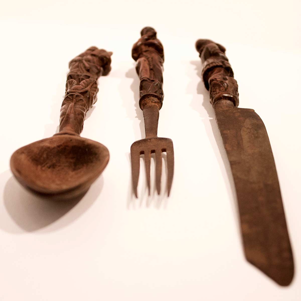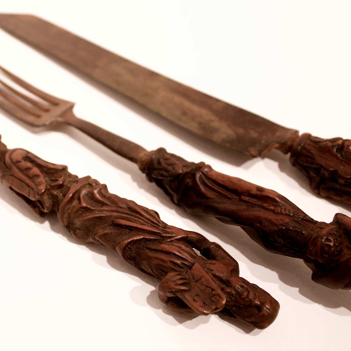 in legno di bosso finemente scolpito raffiguranti Re David, San Girolamo e Mosè