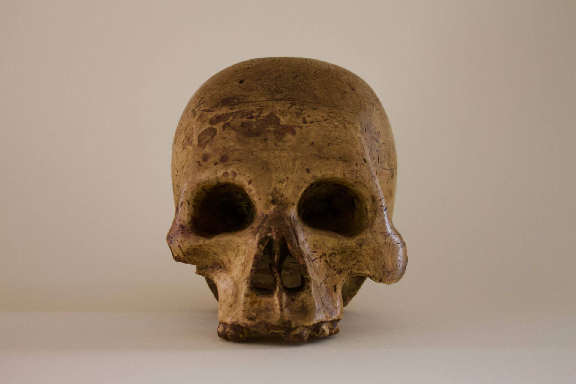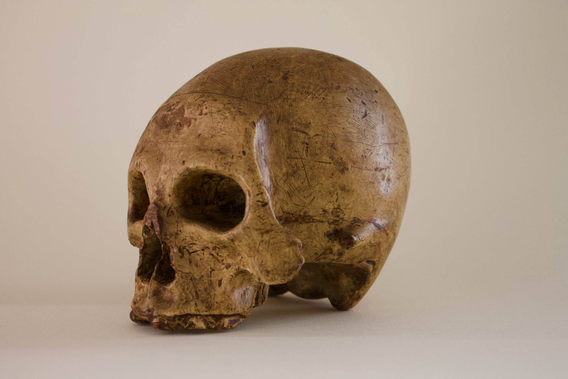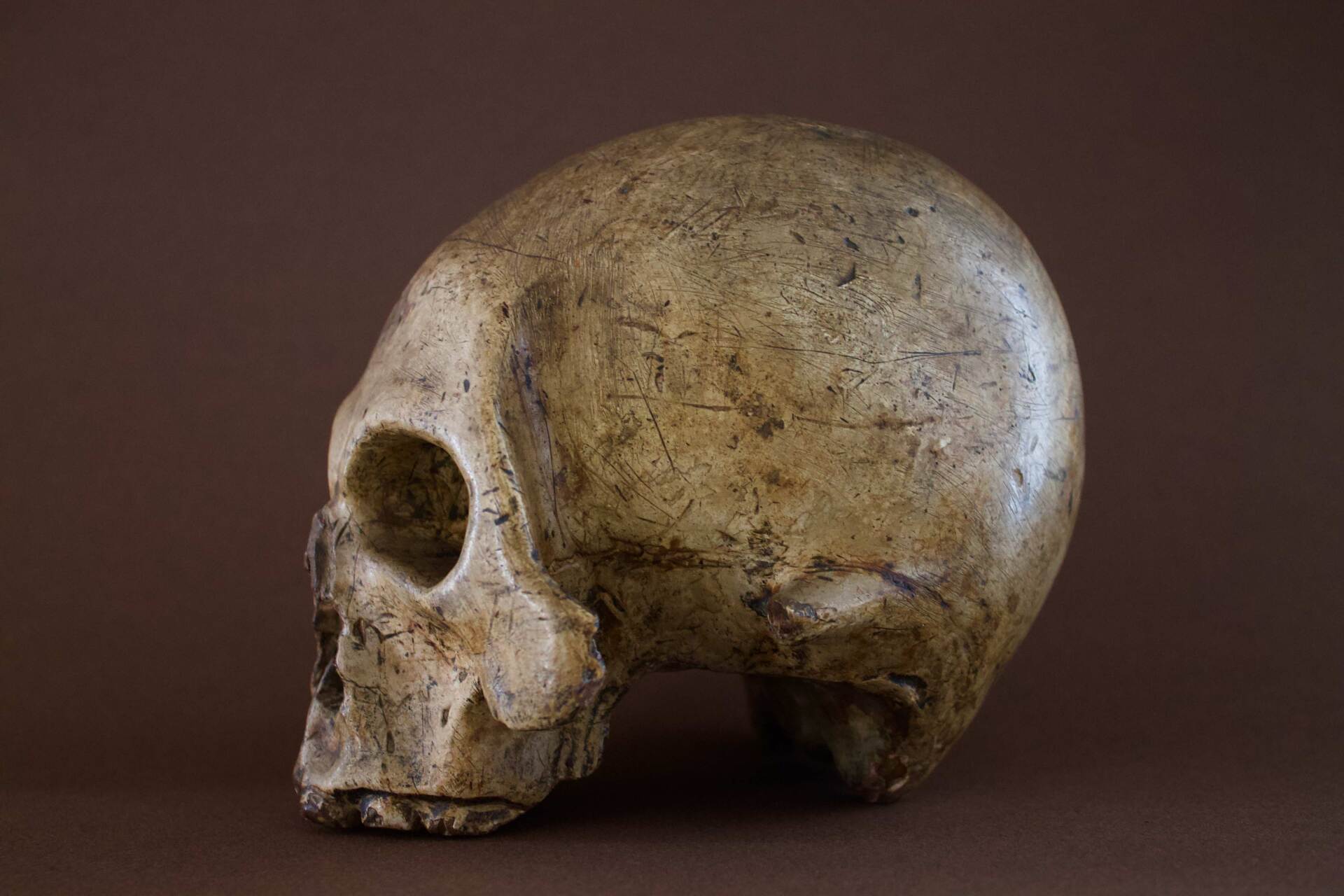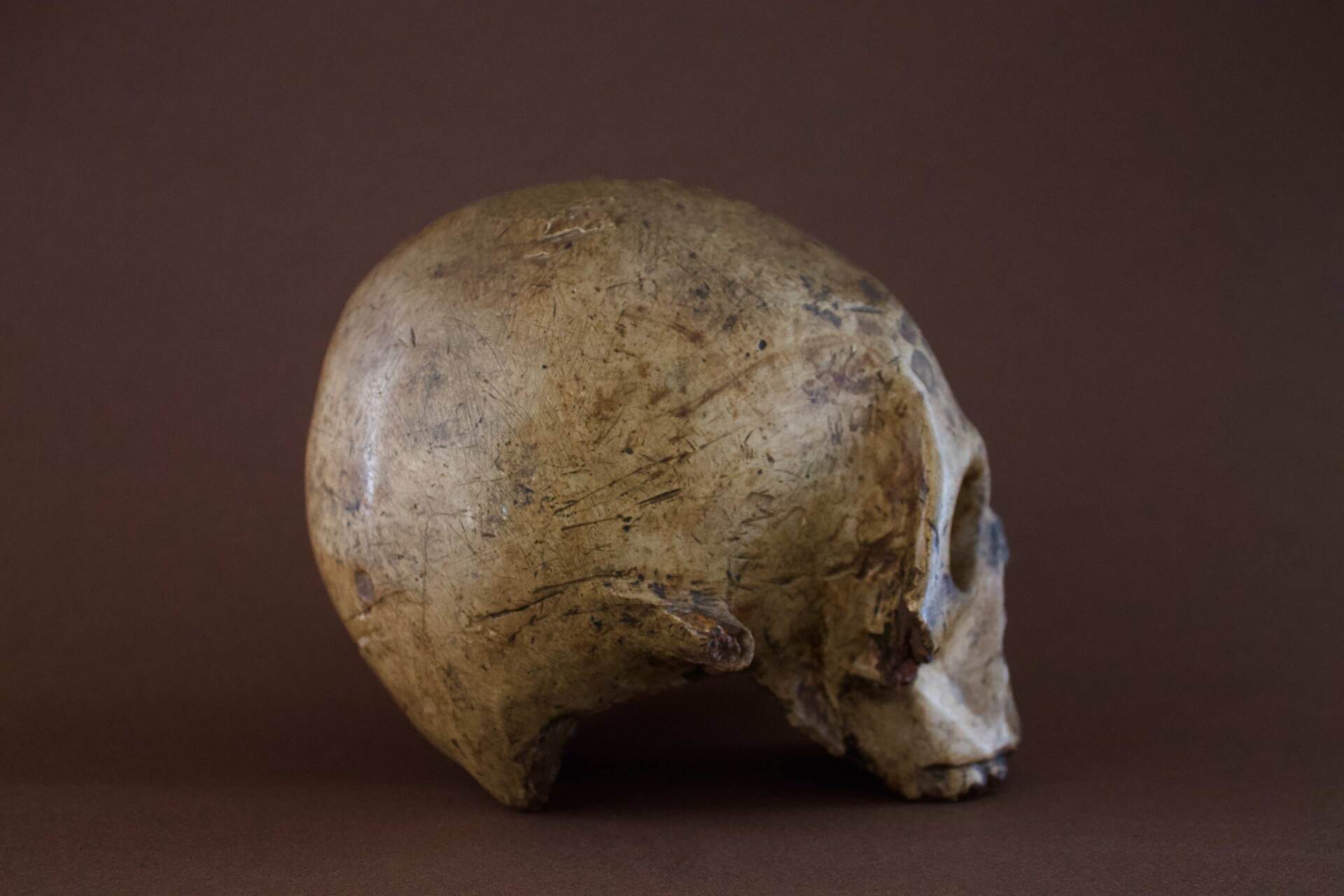 in legno scolpito e policromato Policromia originaleh 15 p 16 l 12 cm.